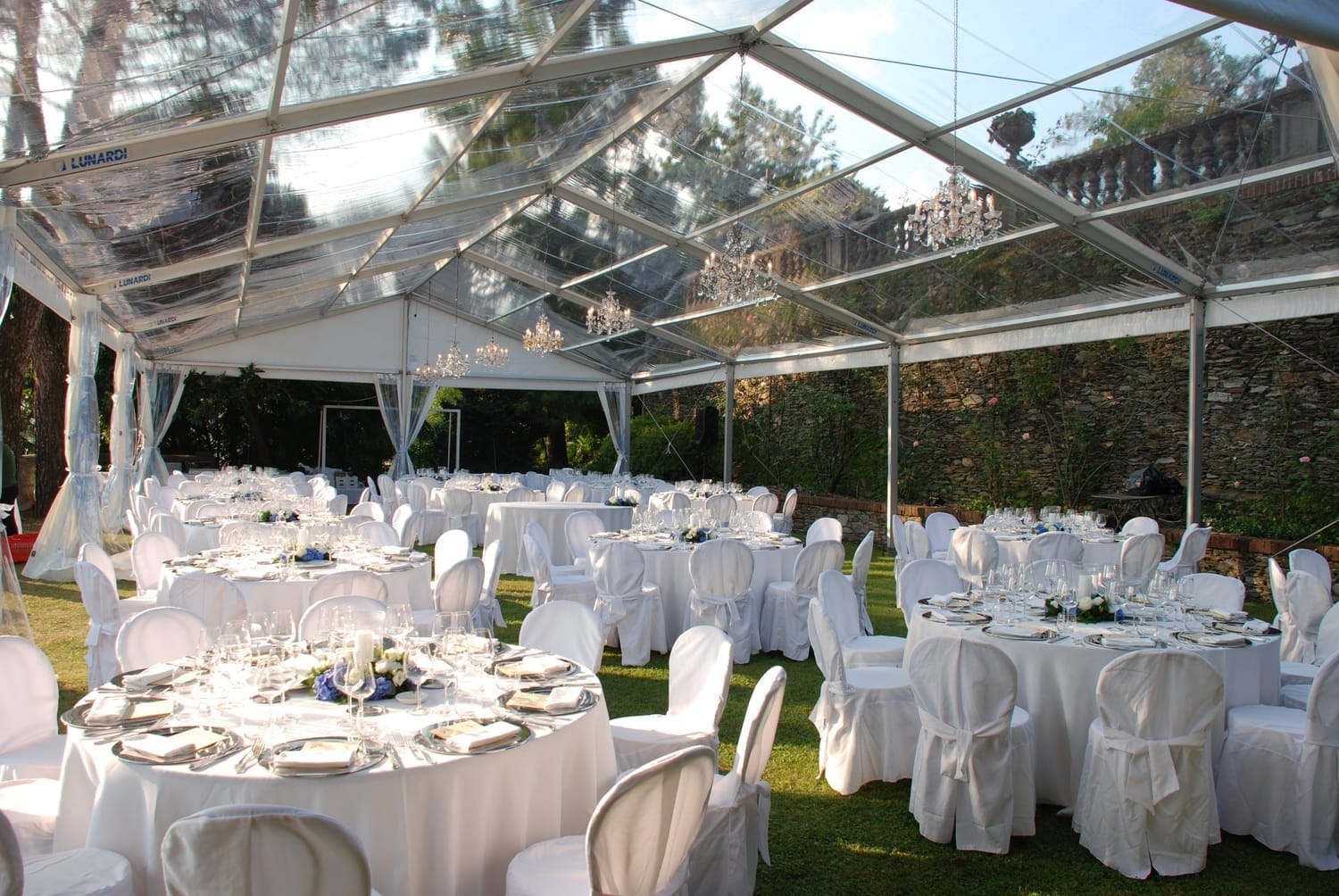 Una soluzioni elegante per rendere unico il tuo evento e proteggerlo dalla pioggia è la corpertura in cristal.